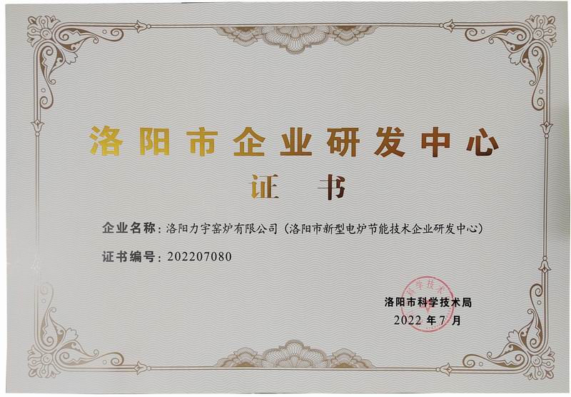 洛陽市企業(yè)研發(fā)中心證書